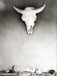 And gradually, she made her way out west where she was intrigued with the dessert, the colors, bones, and what seems the passing of time. Holding a skull of some animal, she seems to be reminding us of where we are all going.