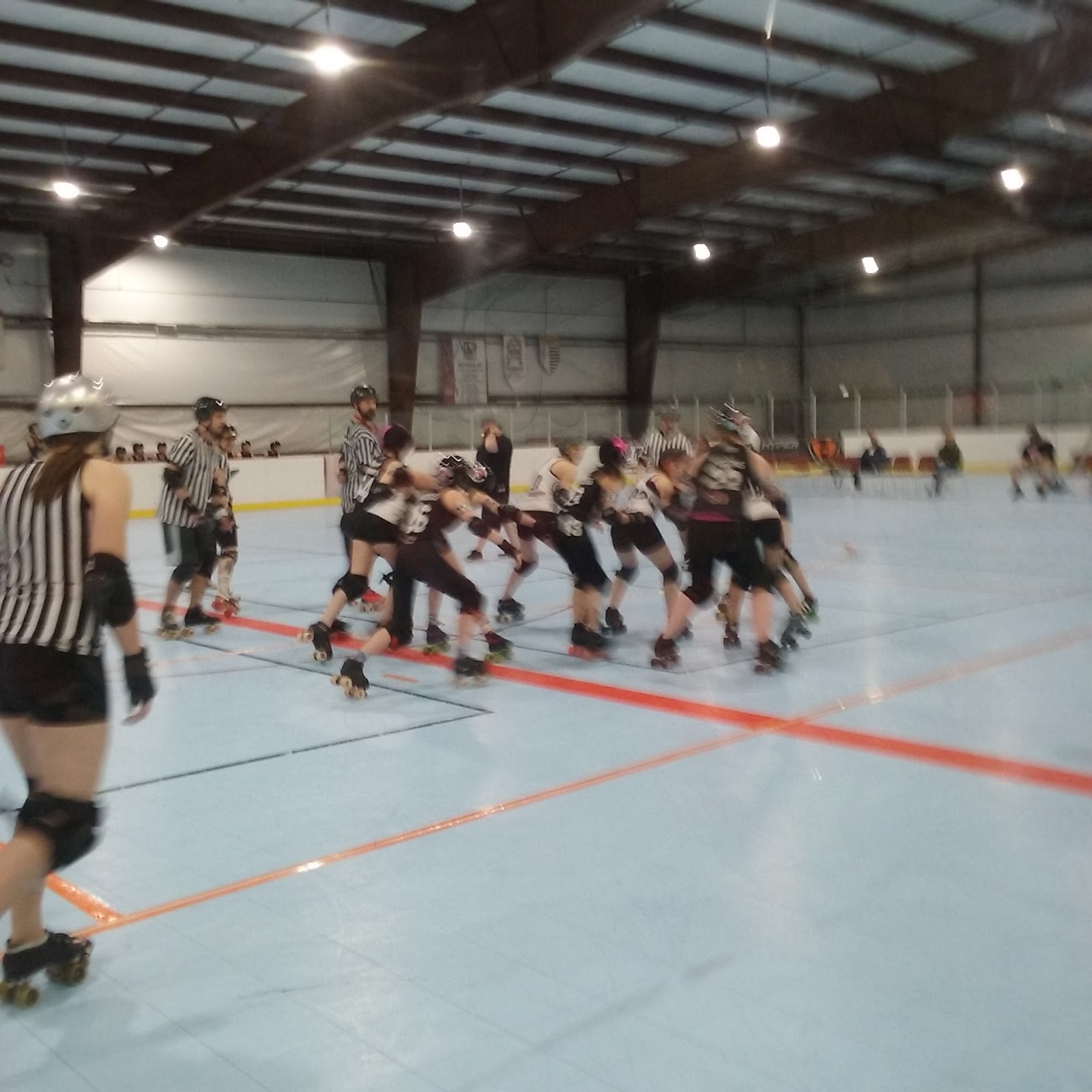 Caroline worked the merchandise table, right by the Kansas table. We coveted each others' cool t shirts. There's a cool punk derby quality to families who do derby. The kids learn how to fight and take a hit and still remain sports. Girl power is everywhere. So is pink and purple hair.