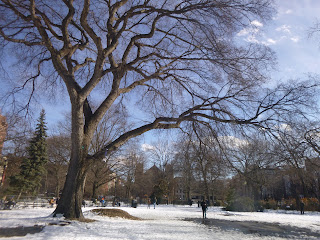 JK and the Teenager and I sit by the Gaia tree, telling stories, recalling the tree's departure and we meander back down the street, back to Canal because the F isn't working.