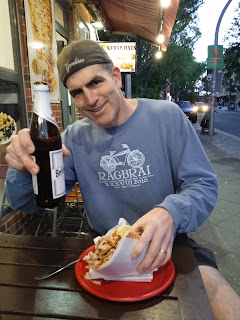 On the road again, Munich to Berlin via Nuremberg. Quite a week, down to Praha Saturday, up to Pilsen, Regensberg, and Munich, through some of the best art and the darkest of histories, hiking into the evening, eating dinner at a monastery, and hiking back through the woods down to the train station, listening to owls hooting the darkness,talking about mom, dad, the cowboys, and Robert Louis Stevenson's journeys and our own through this life.