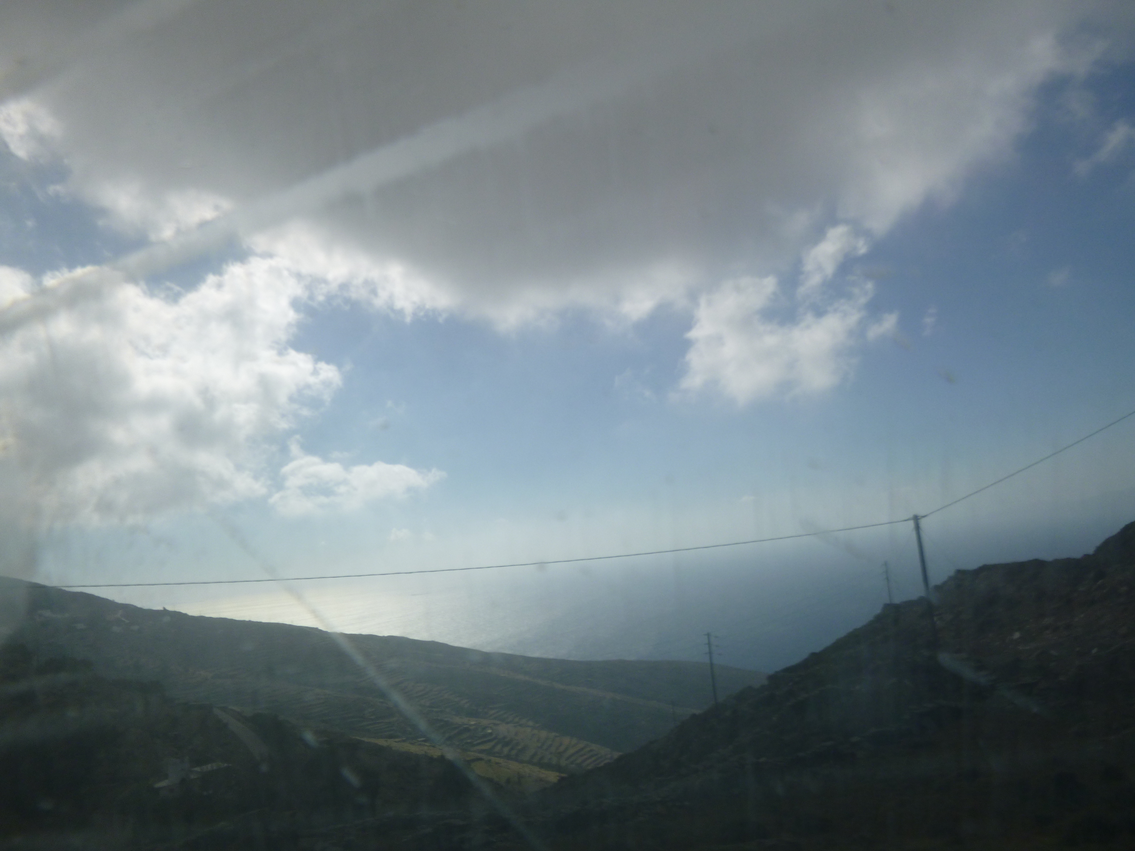 to Tinos, island after island, past the bluest waters, cliffs, whirling curves,